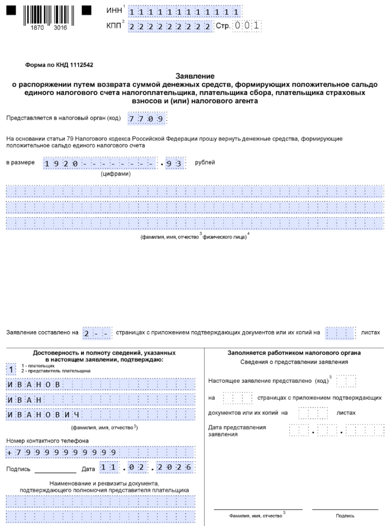 Ситуация, когда на едином налоговом счете (ЕНС) формируется положительное сальдо – не редкость. Закон позволяет организациям и ИП вернуть переплату на расчетный счет без ограничений по видам налогов, если она подтверждена документально. С 15 января 2026 года действуют обновленная форма заявления о возврате – разбираем, как правильно ее заполнить.